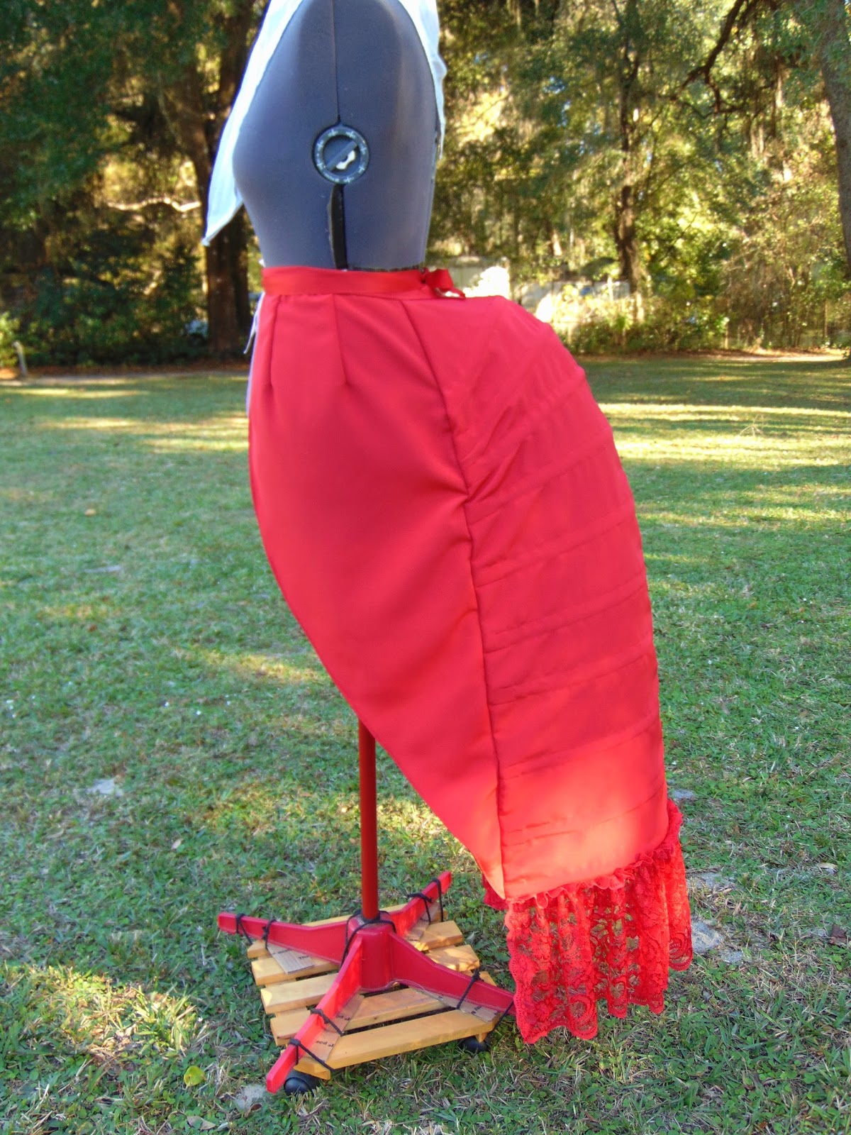 **A note on color. Some of the pics shows the bustle as a kind of magenta or orangish red. It's the camera. This bustle is a solid, bright, 50's lipstick kind of red. No orange tint=)